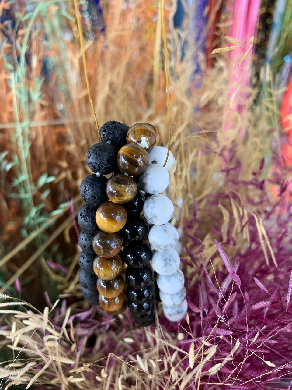 Materials : Howlite, onyx , Tiger eyes and Lava stone